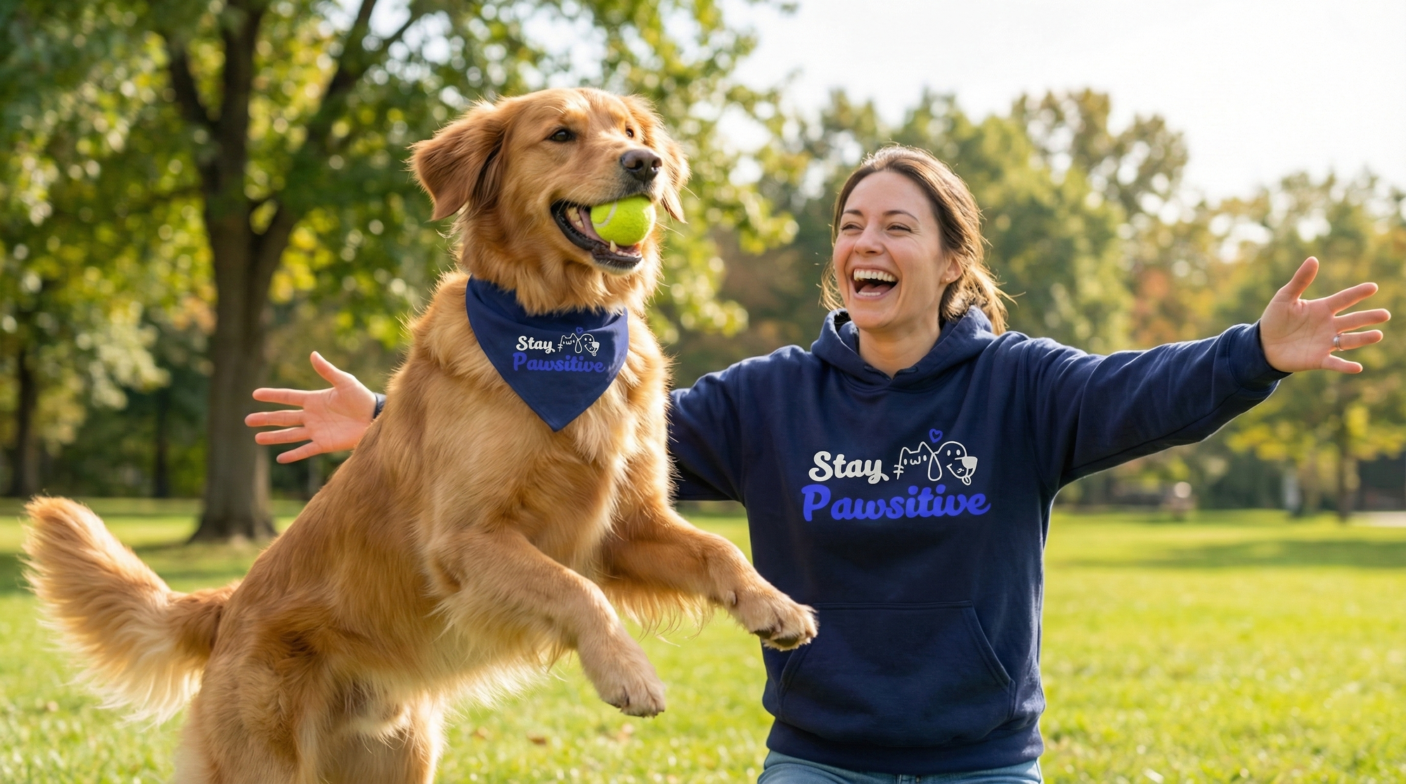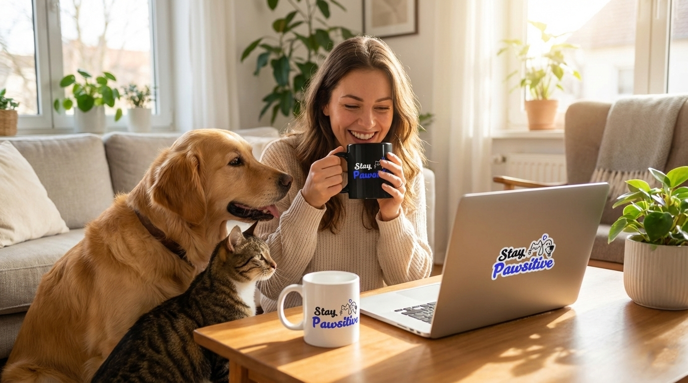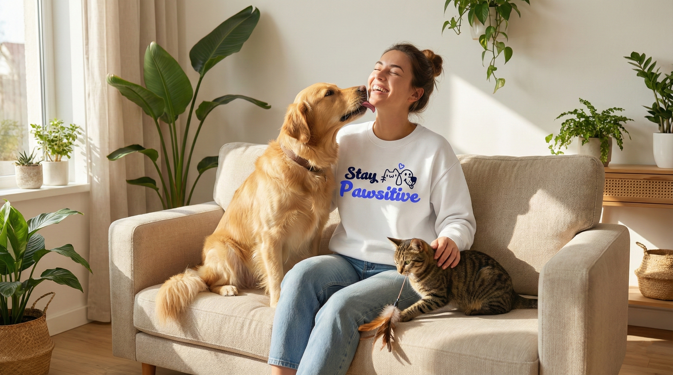 Crewneck Sweatshirt — "Stay Pawsitive" Cute Dog & Cat Graphic